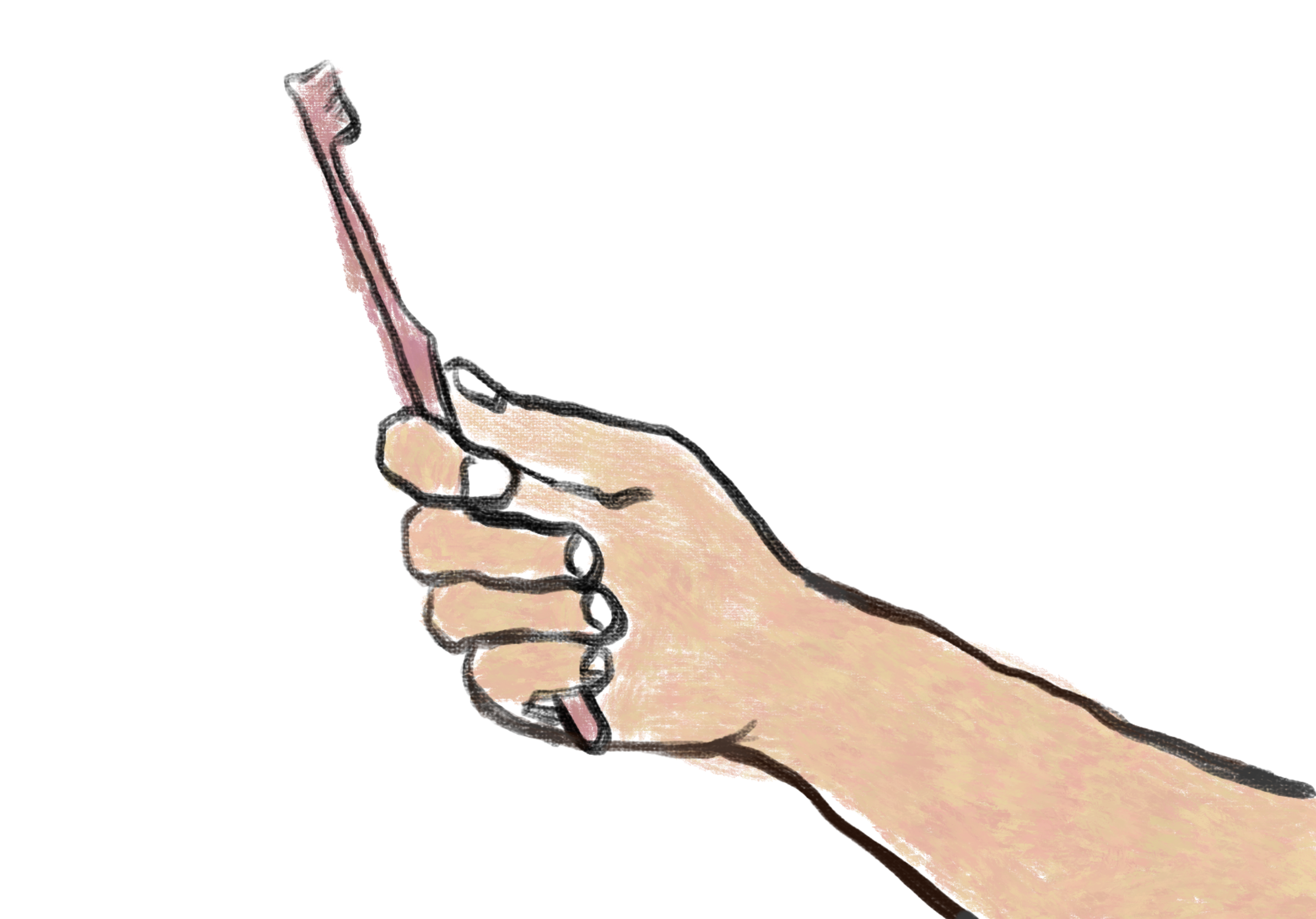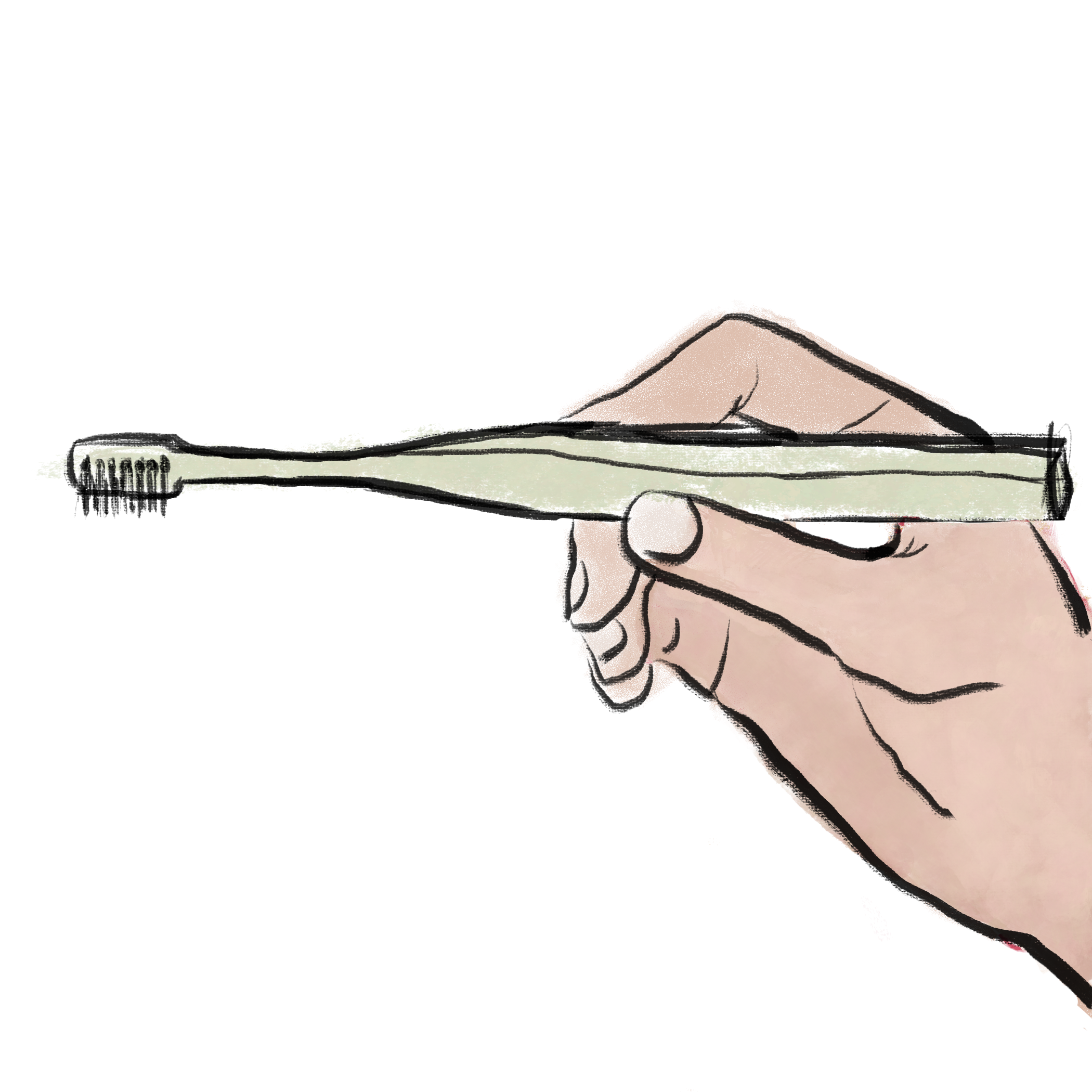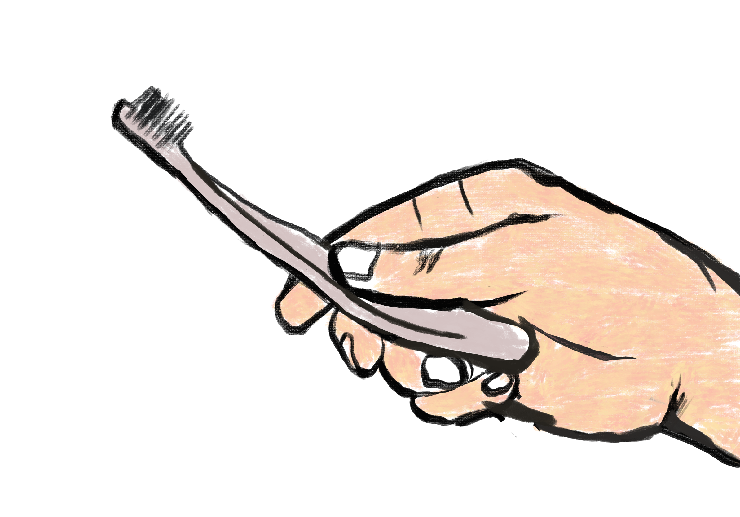 方式:像握槌子一樣,整隻手包住牙刷柄。
